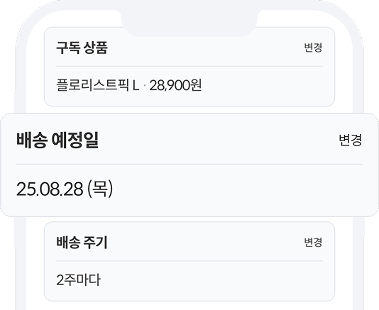 회차적립금수령일 4일 전 배정된 품목을 알림톡으로 보내드려요. 구성이 마음에 들지 않으면, 수령일 1일 전 오전 8시까지 품목을 변경하거나 추가할 수 있어요.