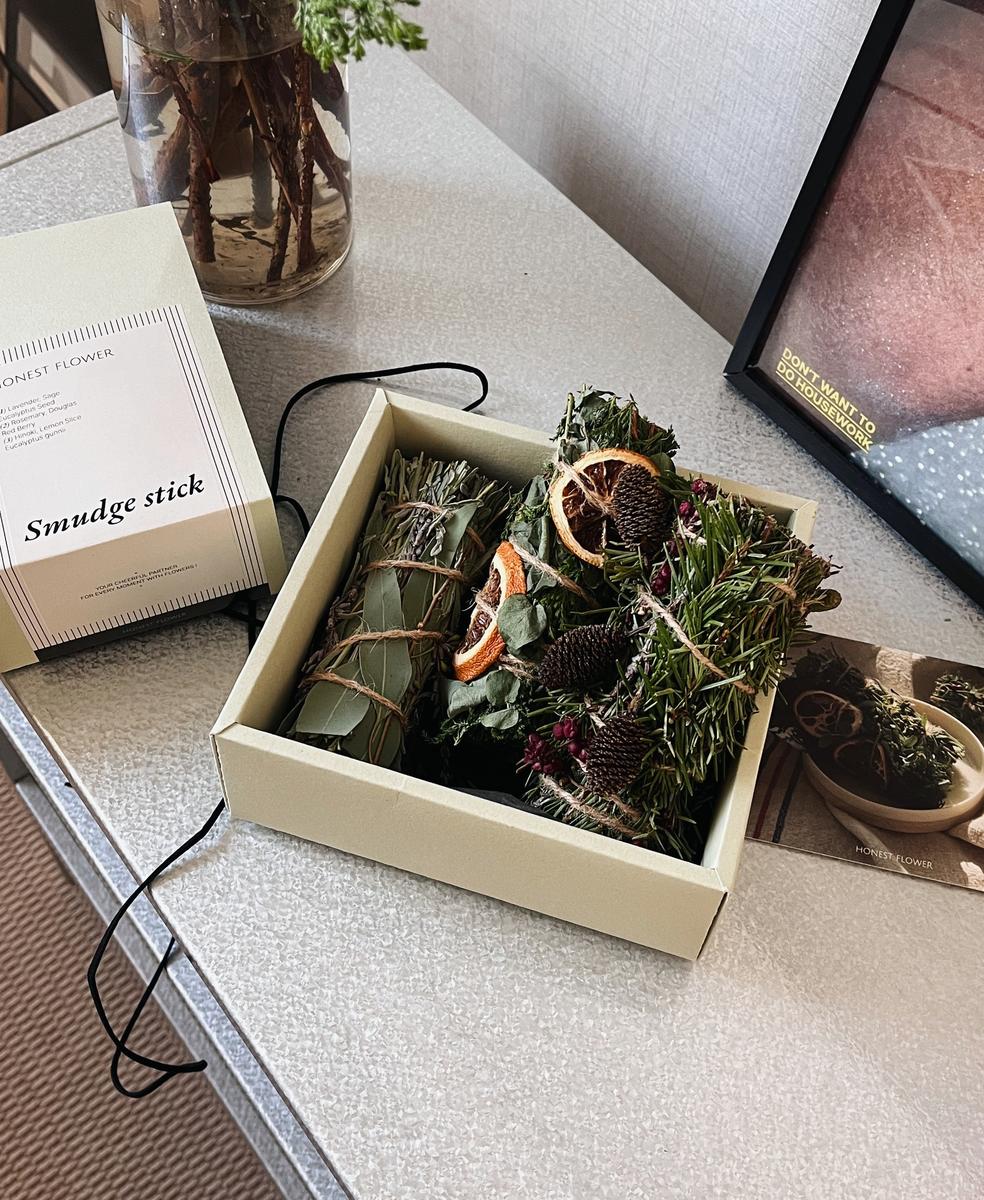 스머지 스틱은 단순한 향기 아이템이 아니에요. 손 끝으로 엮어낸 생화의 숨결, 그 향기와 분위기가 일상에 잔잔한 위로를 선사하죠.