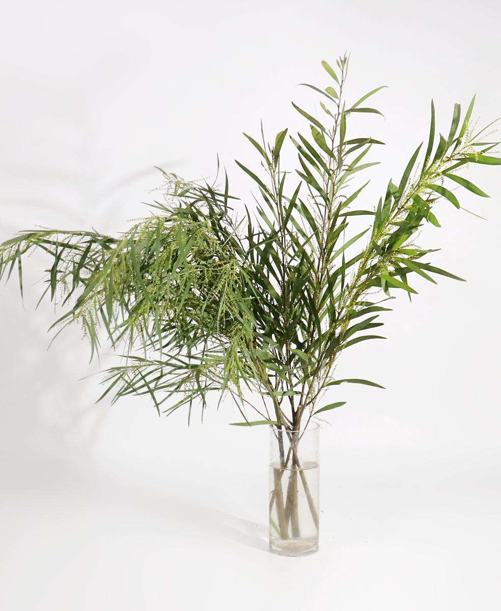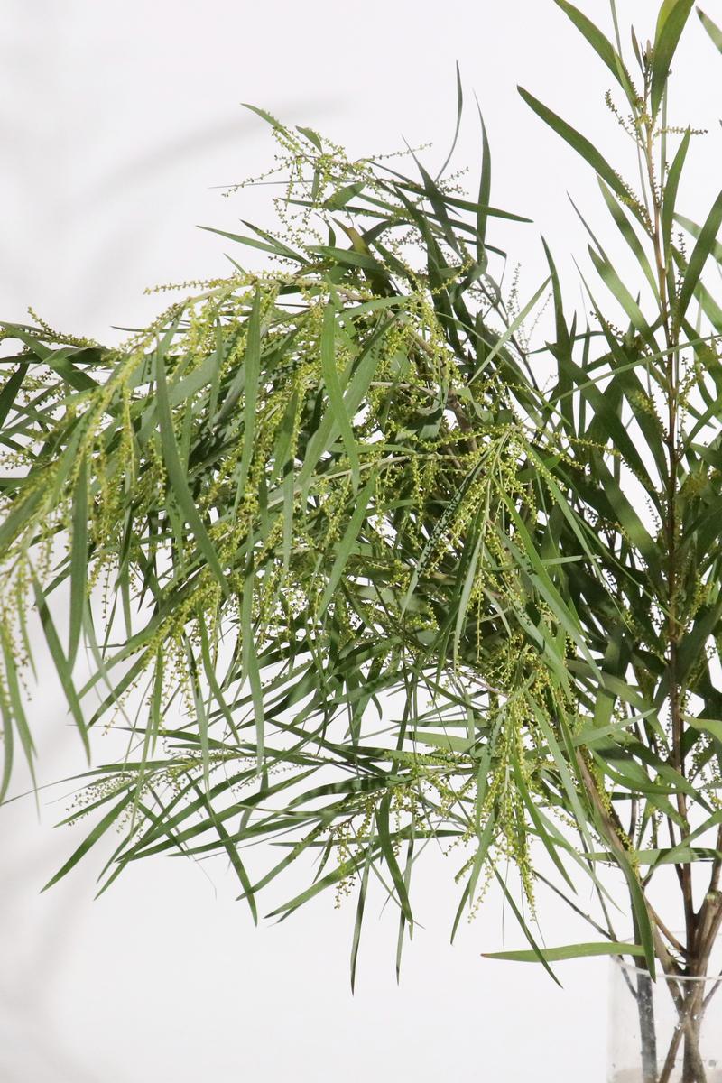 잎이 작고 섬세하며, 살짝 곡선이 있어 부드러운 분위기를 연출할 수 있습니다. 긴 기장감에 비해 무게감이 다소 적고 유연하여 단독으로는 버드나무 같은 멋스러움을 뽐내고 다른 꽃과는 내츄럴하고 감성적인 느낌을 살릴 수 있습니다.