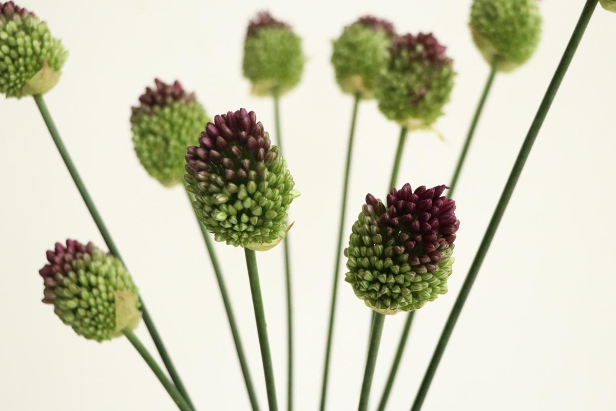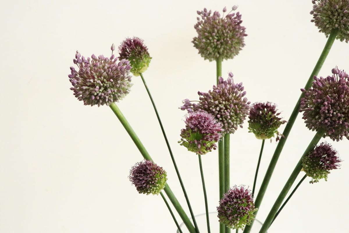 길게 뻗은 줄기 끝에 또렷하게 맺힌 보라 구체는, 어떤 공간에서도 단숨에 시선을 사로잡는 자연 속 오브제 같은 존재입니다. 미니 알륨은 줄기가 길고 곧게 뻗어 있어 키가 큰 꽃꽂이에도 잘 어울려요. 잎이 없는 매끈한 줄기 덕분에 컨디셔닝 없이 바로 간편하게 연출할 수 있죠.