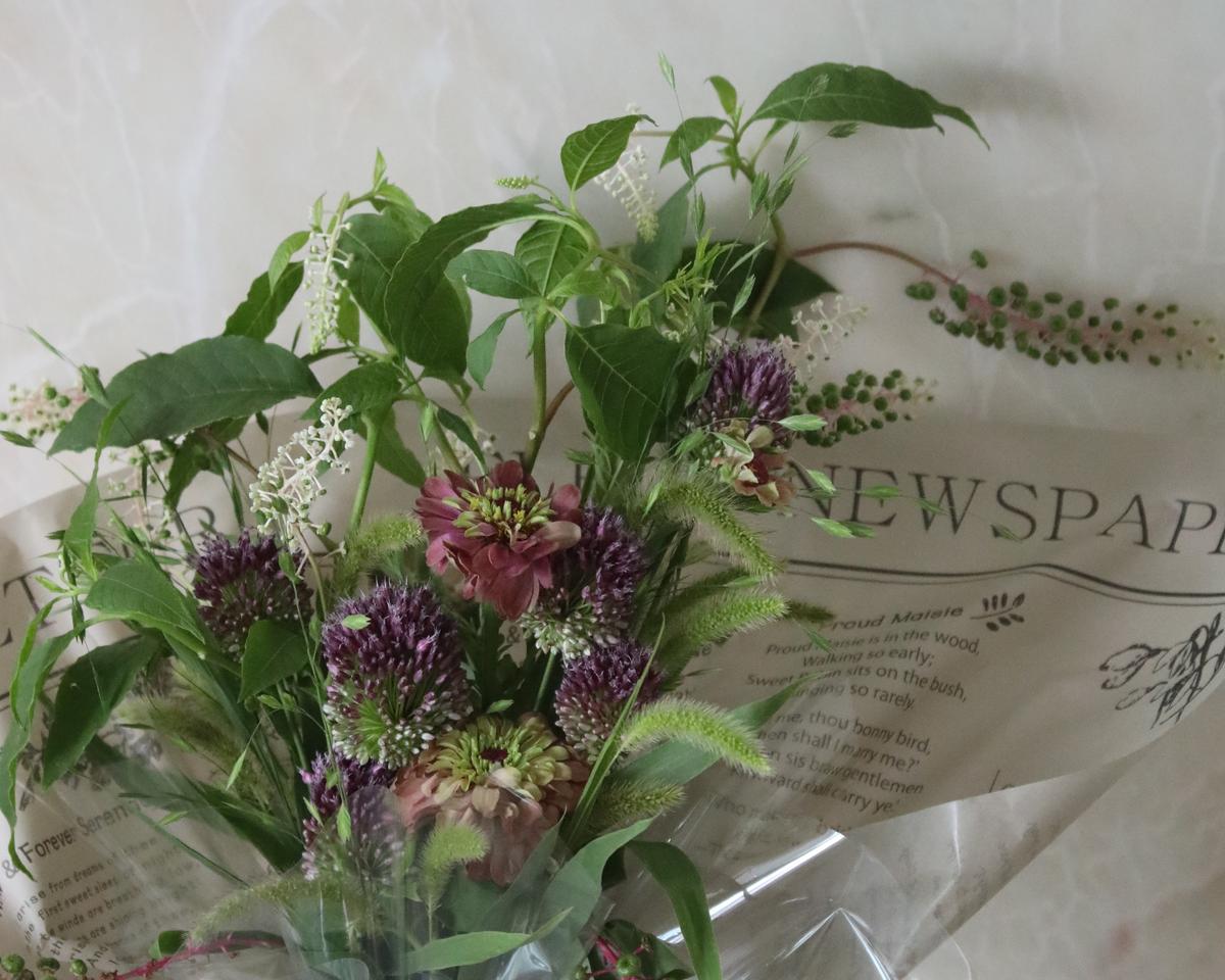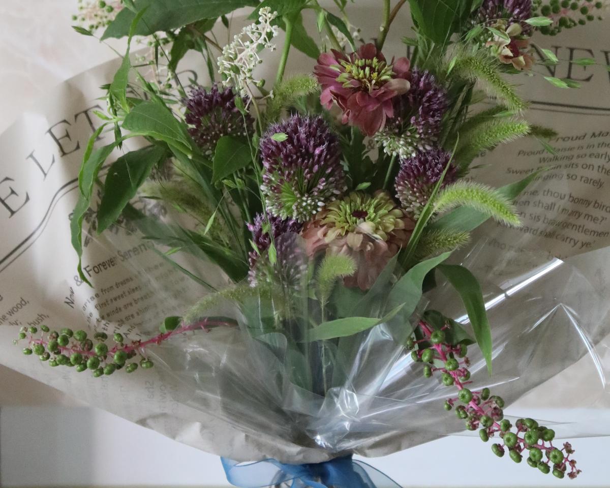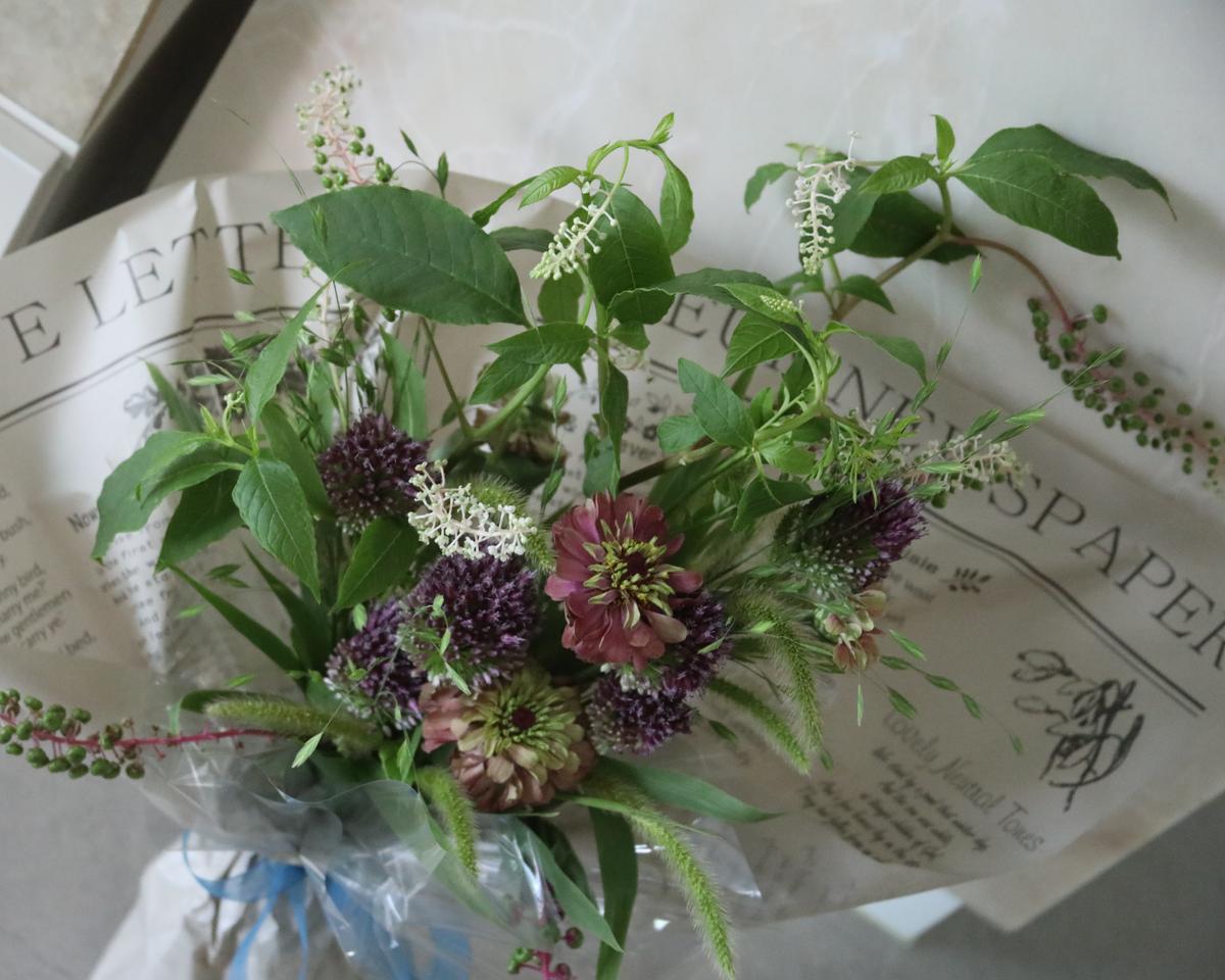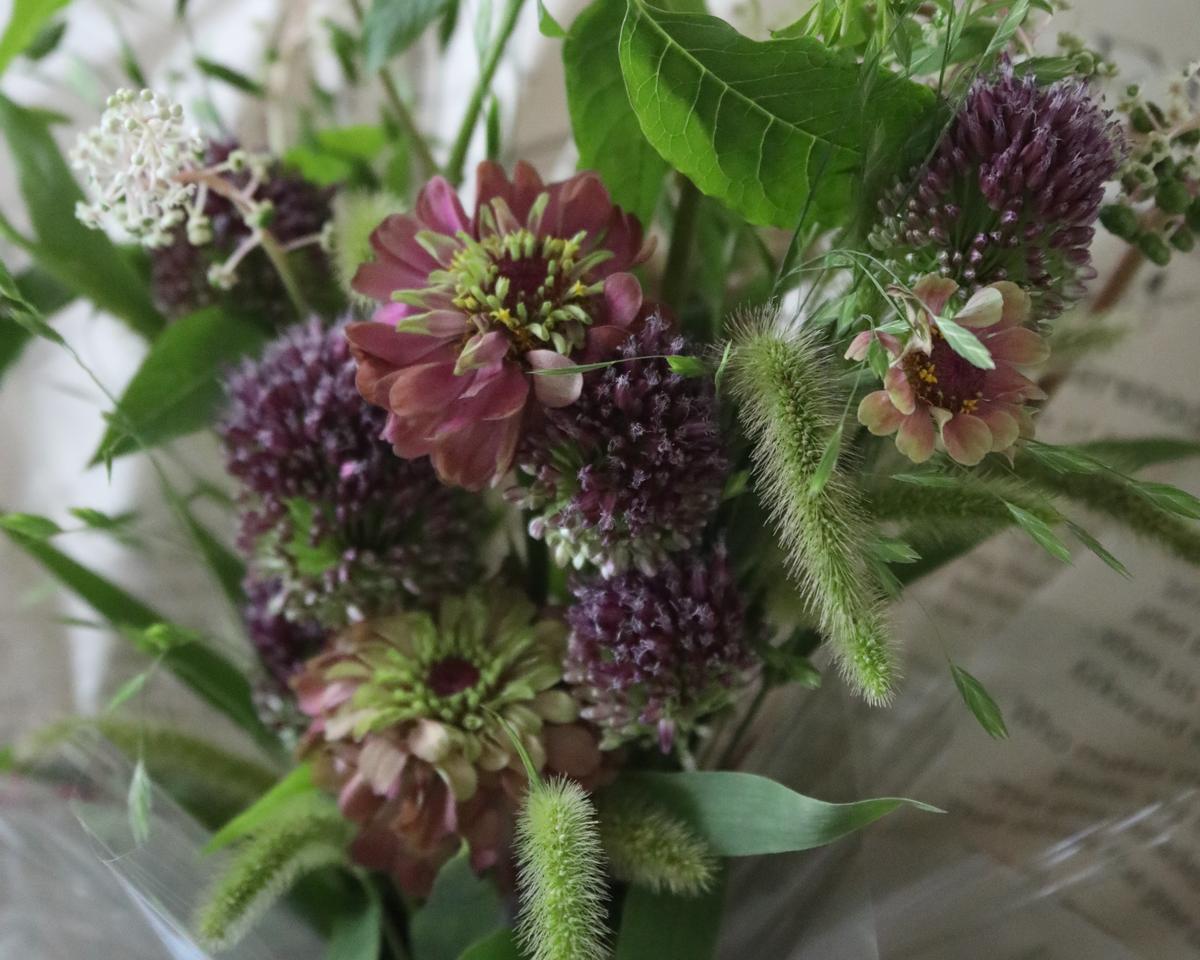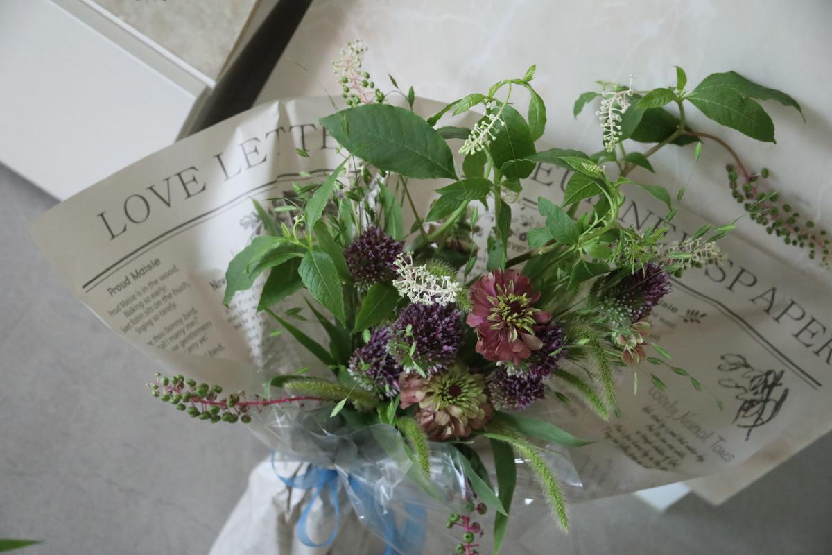 드럼스틱, 백일홍, 라그라스, 자리공의 위 조합은 서로 다른 계절의 질감이 조용히 어우러집니다. 화병에 꽂는 순간 공간이 빈티지한 여운으로 채워지고, 은근한 분위기를 좋아하는 분들께 추천드려요.