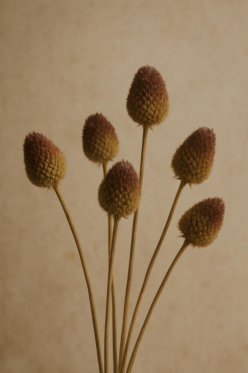 건조되면서 보랏빛은 서서히 빠지며 회갈색 또는 연갈색빛으로 변화해요. 그 변화마저 자연스럽고 빈티지한 매력이 있어 내추럴 인테리어, 드라이플라워 연출에 잘 어울리죠.