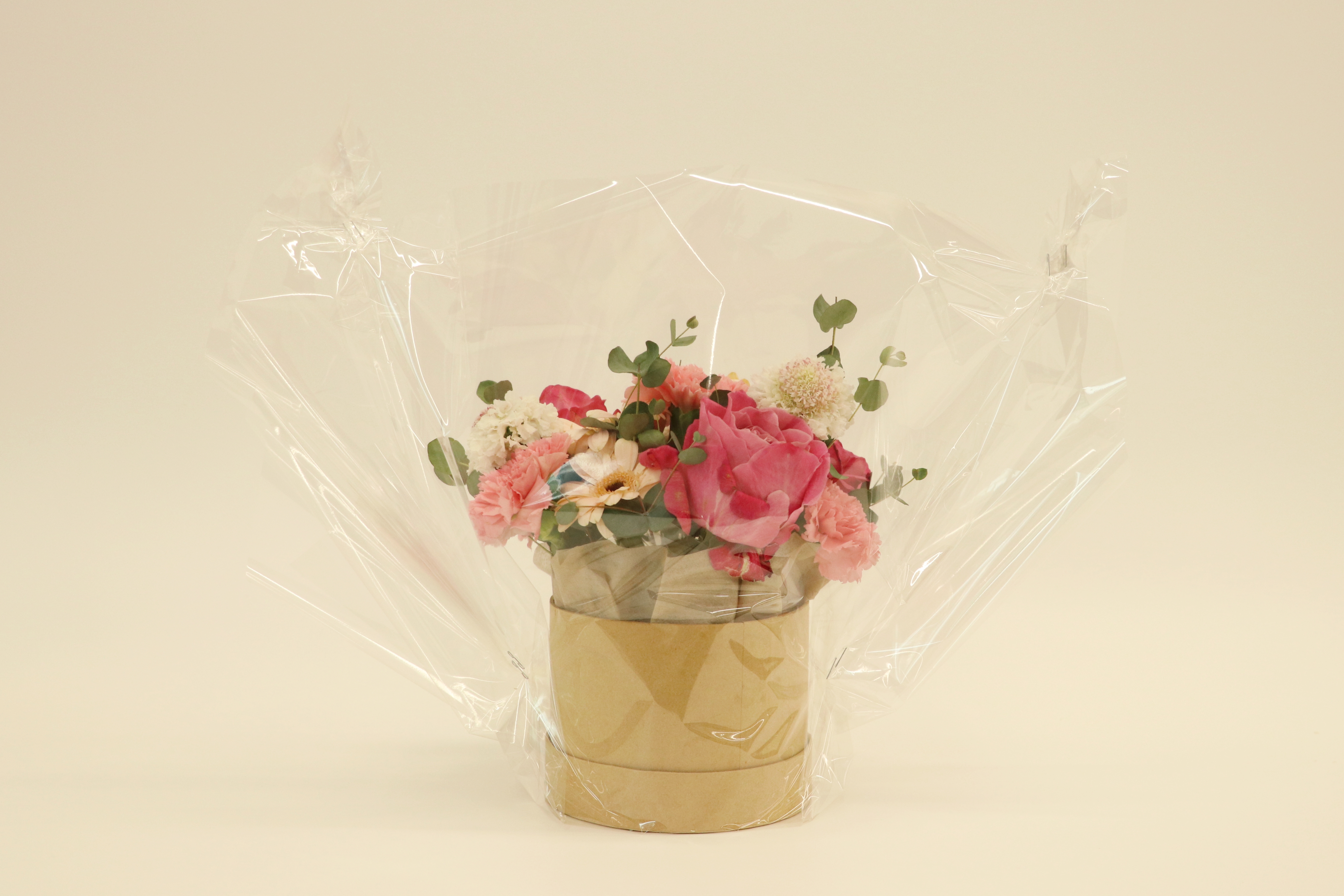 완성된 센터피스는 투명 비닐로 1차 포장을 진행합니다.
