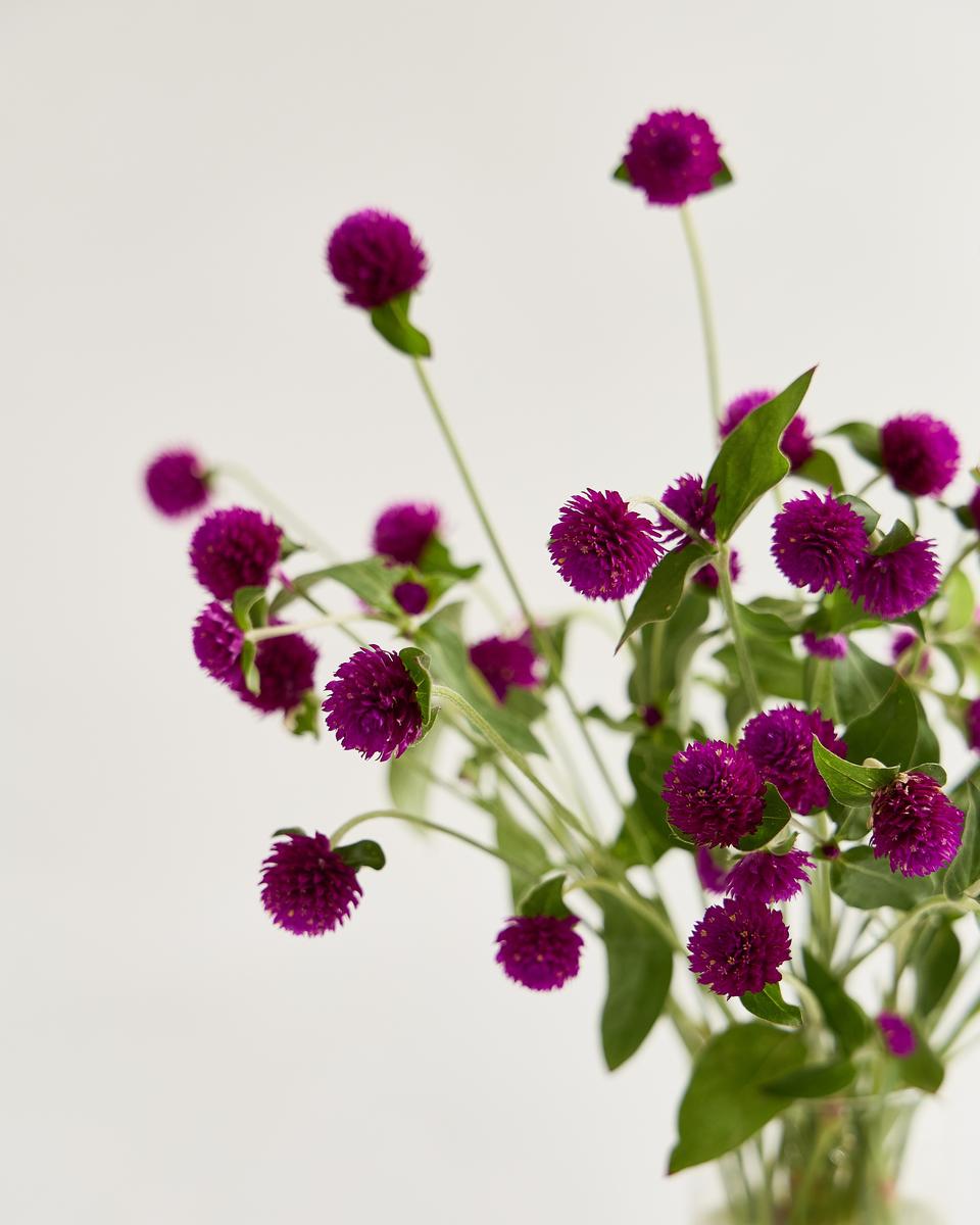 드라이플라워로도 많이 알려진 천일홍은 최근에는 절화 꽃다발 사이의 귀여운 포인트 꽃으로 많이 연출되고 있는데 드라이 후에도 색상과 모양을 거의 그대로 유지한다는 장점이 있습니다.