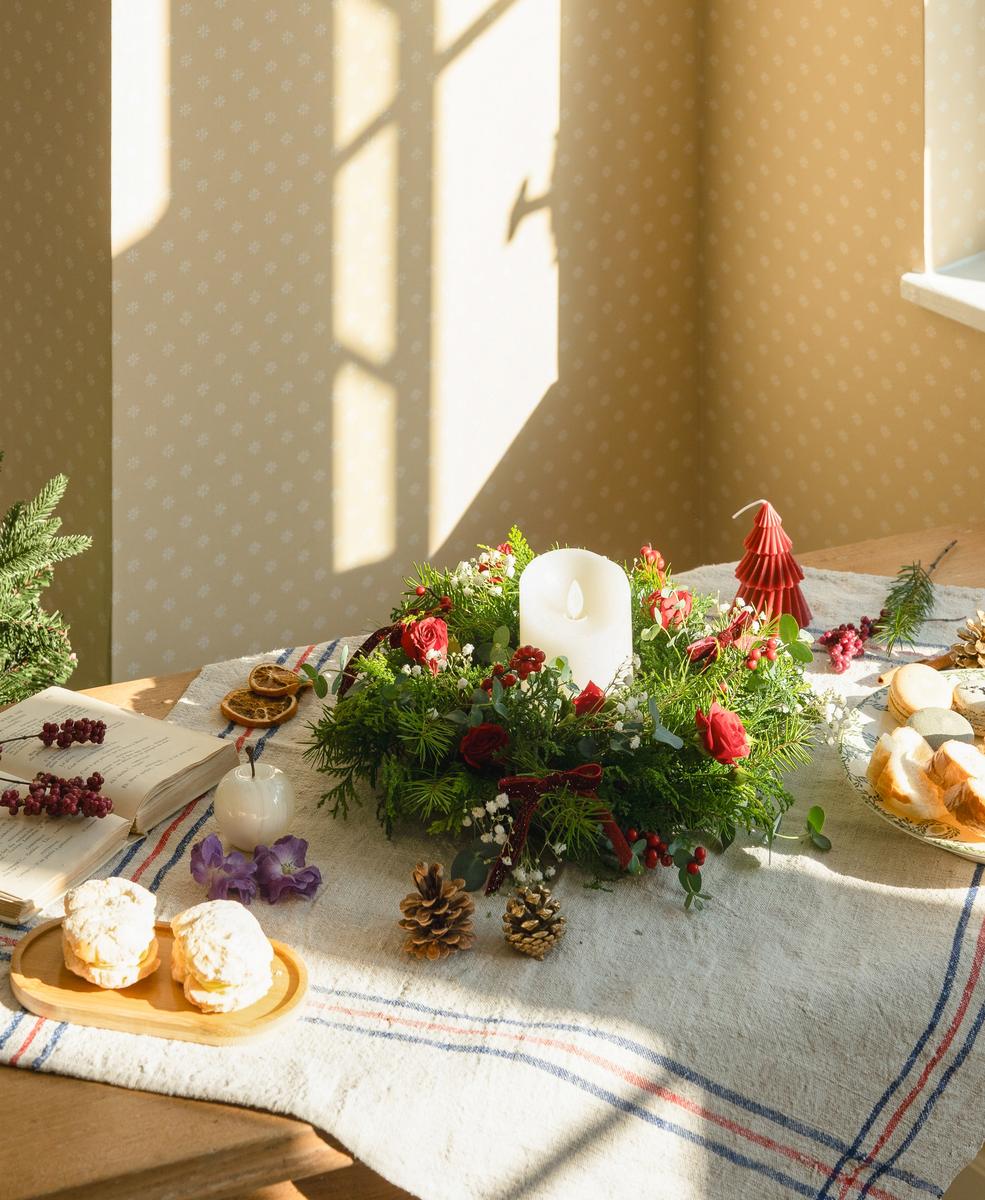 연말 또는 크리스마스가 다가오면 소중한 사람들과 함께하는 자리가 늘어납니다. 식탁에 둘러앉아 도란도란 나누는 시간에 테이블 리스가 더 따뜻하고 아늑한 크리스마스 연말을 만들어줄 거예요.
