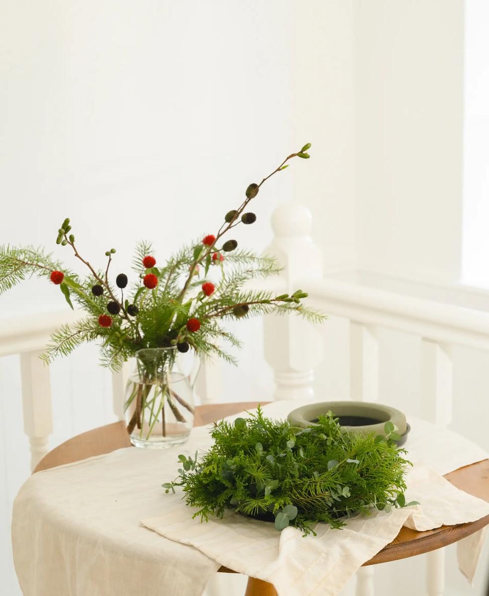 테이블 리스의 가장 큰 장점은 높은 활용도예요. 완성된 리스를 그대로 테이블에 두어도 되고, 좋아하는 향초를 중앙에 놓고 분위기를 더해보세요. 또는 다양한 장식품으로 대체하여 활용해도 좋아요!