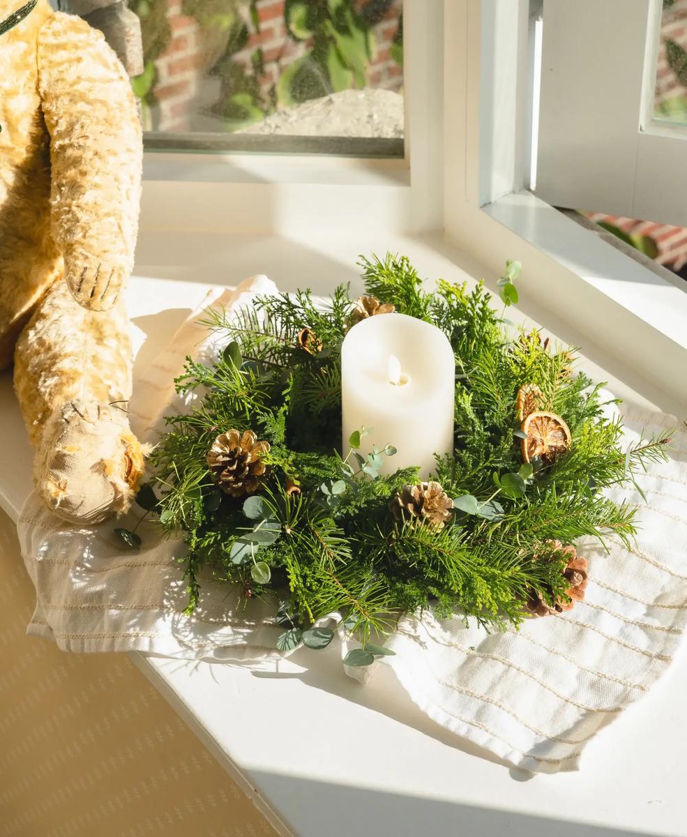 04 완성된 리스는 안에 캔들을 두거나 테이블 장식으로 활용해보세요.