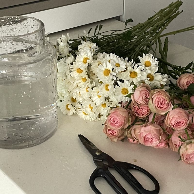 국화는 물이 금방 탁하게 흐려질 수 있어요. 1~2일에 한 번씩 물을 갈아주면 10일 이상 오래오래 예쁘게 감상할 수 있답니다.