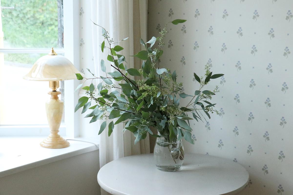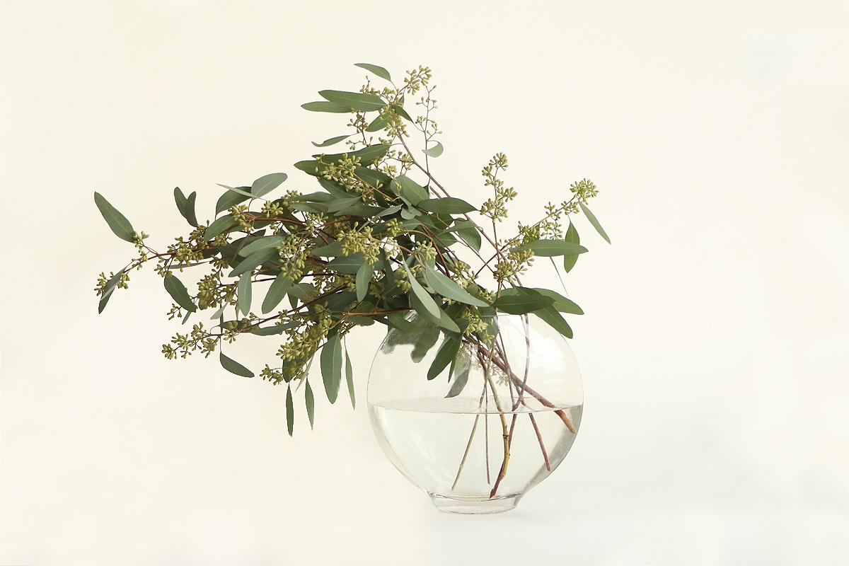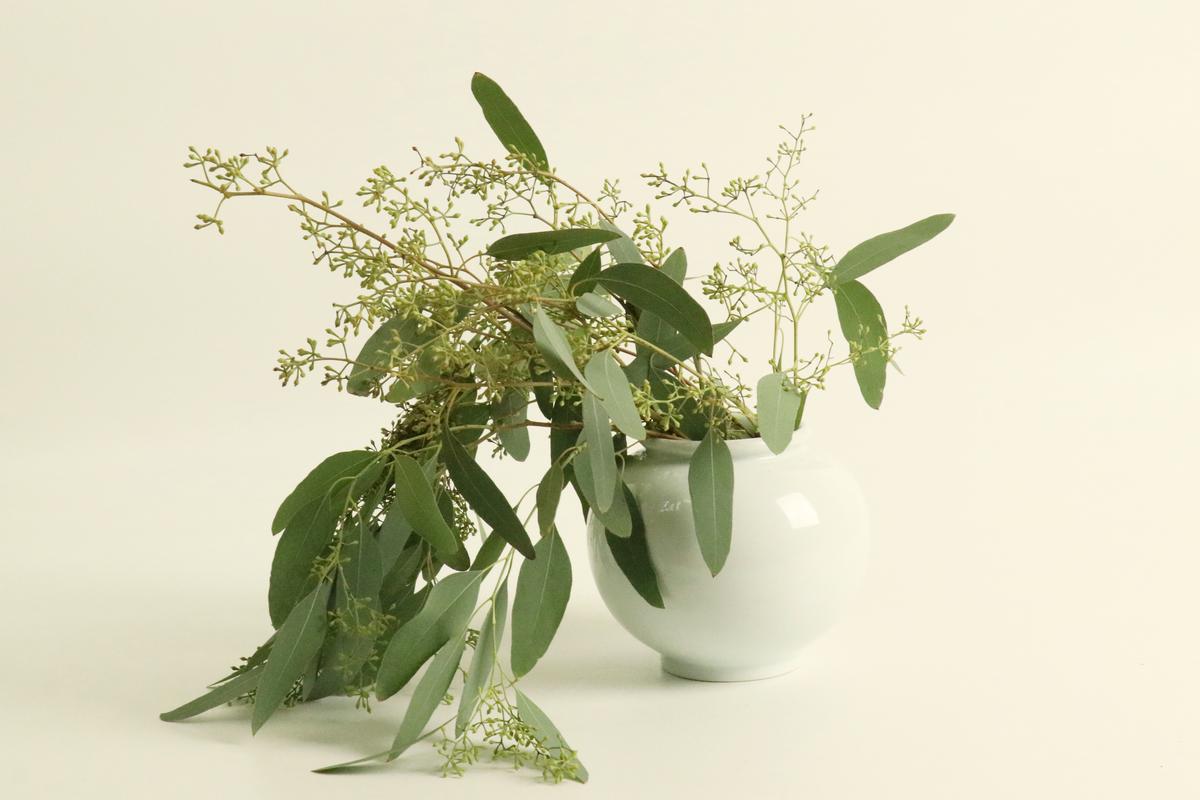 달항아리에 늘어지게 연출한 씨드 열매유칼립투스
