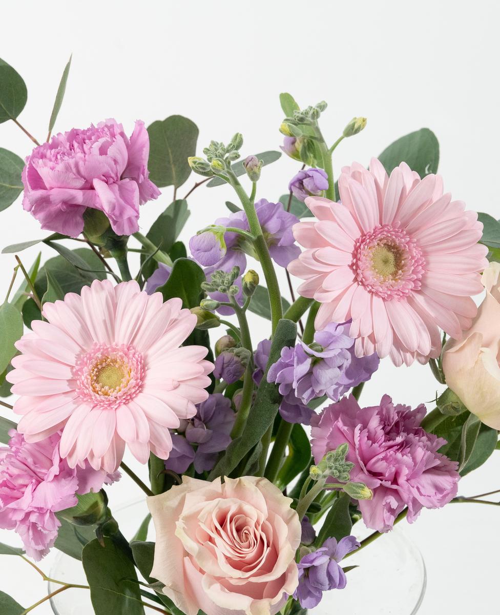 괜시리 마음이 몽글몽글해지는 다양한 톤의 핑크믹스 조합에 푸릇한 유칼립투스 폴리안을 섞어 쿨톤을 완성했어요. 자칫 귀여워만 보일 수 있는 핑크에 톤다운된 그린을 첨가하면 어린 핑크를 어른스럽게 만든답니다.