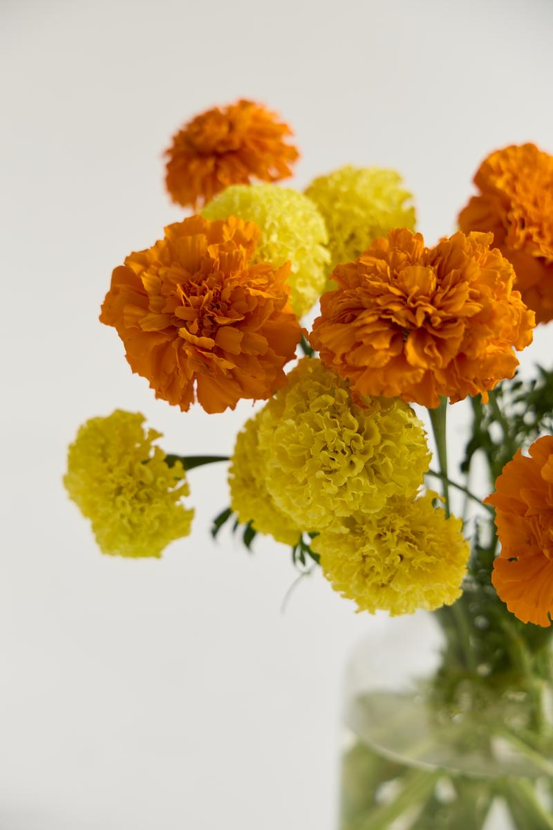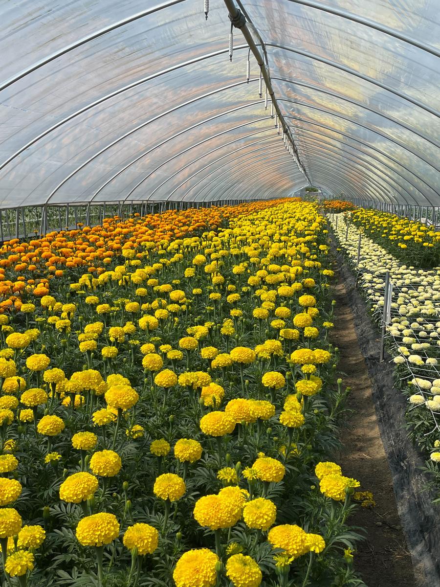 노지에서 자라는 메리골드는 대부분 가을에만 만날 수 있는 계절의 꽃이에요. 겨울 서리가 내리기 전까지만 수확할 수 있어 그 기간이 짧지만 그만큼 자연의 바람과 햇살을 온전히 받아 더 건강하고 단단하게 자랍니다.