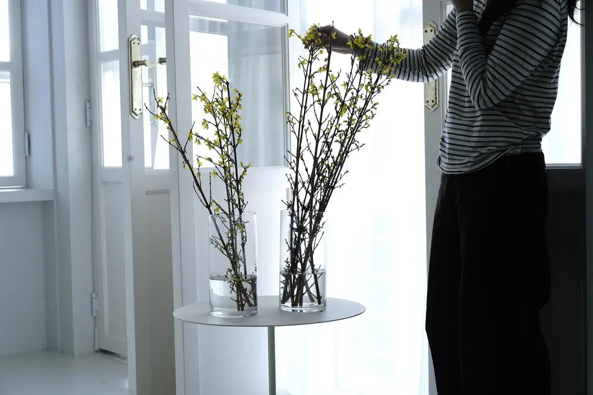 나뭇가지류는 최대한 가지의 모양을 살려 연출하는 것이 잘 어울리는 특징이 있습니다. 그래서, 가장 대중적으로 추천하는 절지류 도구세트는 실린더 유리화기 (M)와 전지가위입니다.