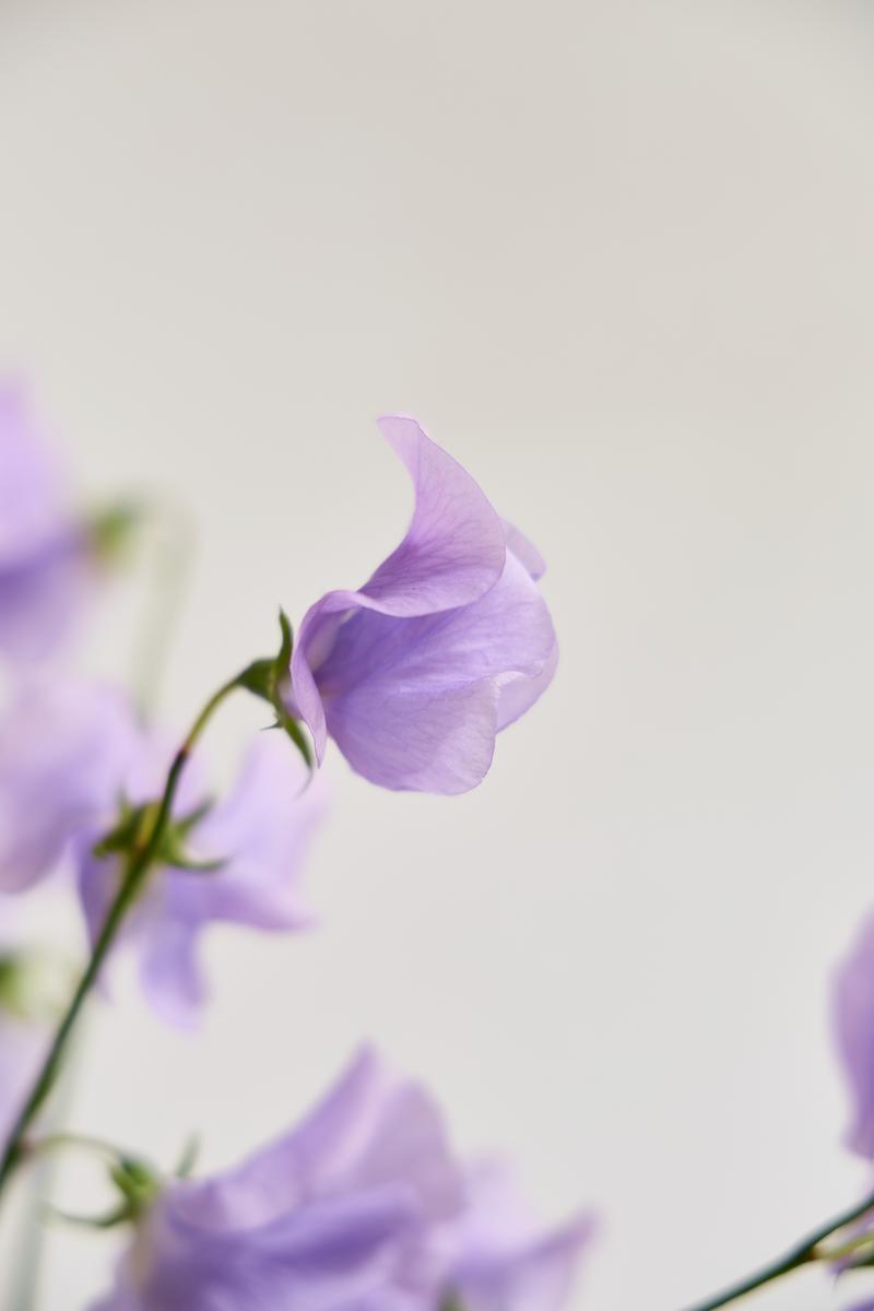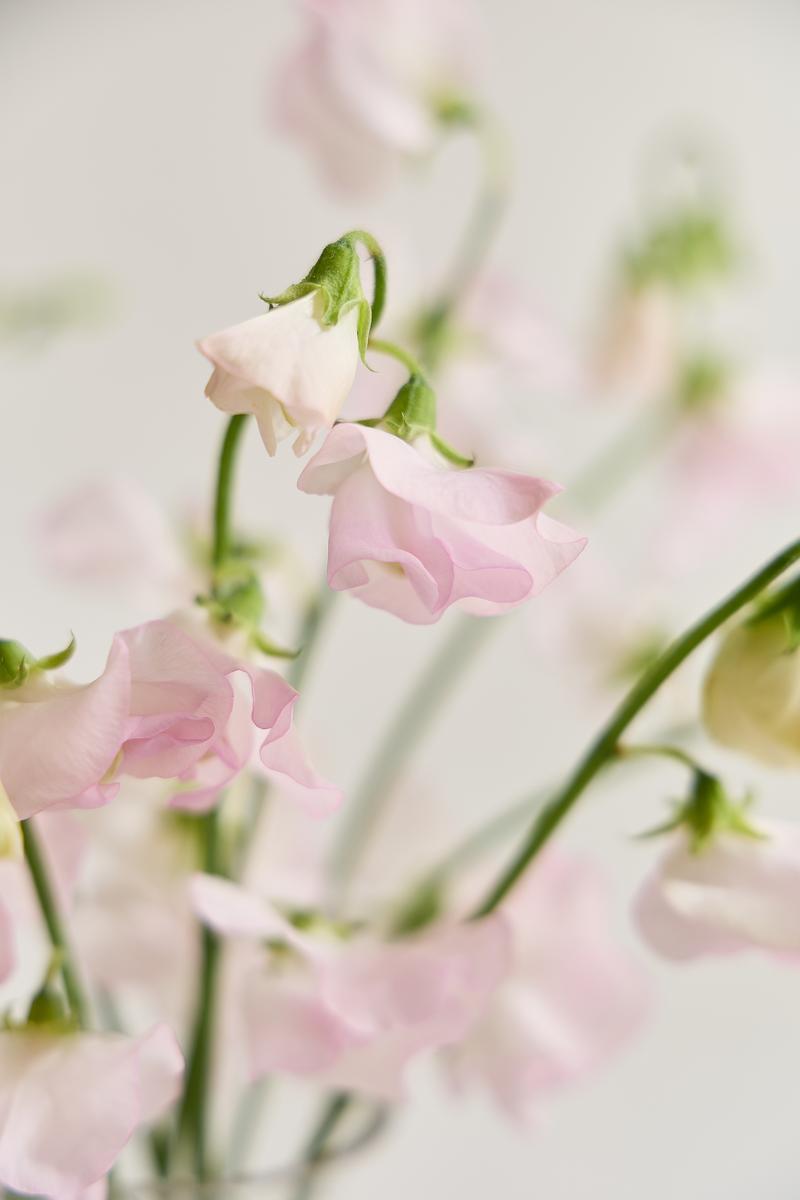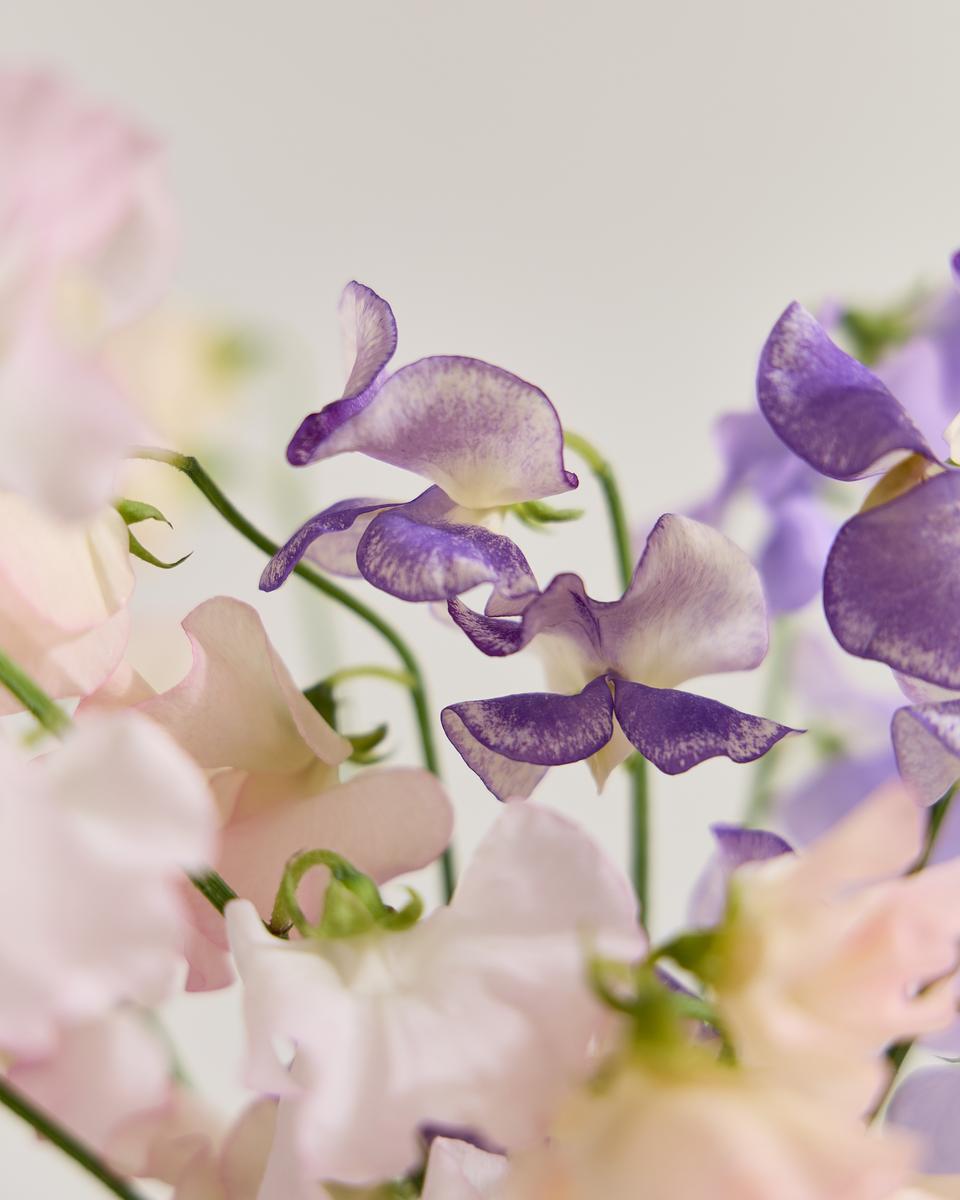 스위트피는 시칠리아에서 온 콩과 덩굴식물로, 본래 10m 이상 길게 자라 손으로 덩굴을 감아가며 재배해야 할 만큼 손이 많이 가는 꽃이에요. 시장에서는 줄기만 짧게 유통되어 그 진짜 특징이 드러나지 않지만, 국내 재배 농가도 매우 적어 희소성과 가치가 높은 꽃으로 알려져 있습니다.