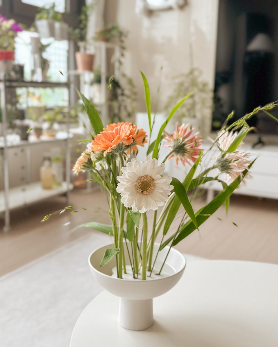 니다. 화병에 꽉 찰만큼 풍성한 느낌을 원하신다면 거베라 믹스 20대 구성을 추천드려요.