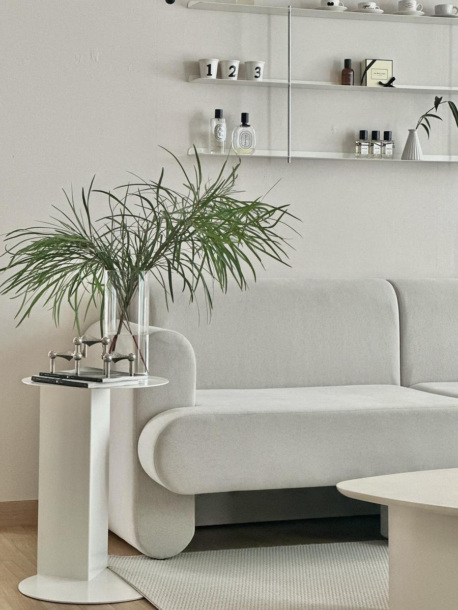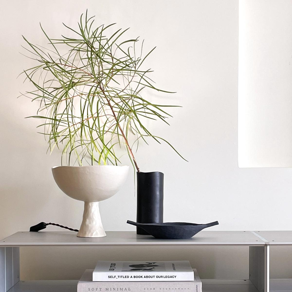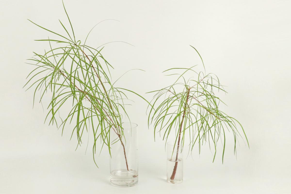 바커부쉬는 반단의 볼륨으로도 존재감이 충분해요. 화병에 툭! 꽂아두고 살살 만져주면 손쉽게 연출이 가능하답니다. 유리화병에 연출하면 깔끔한 무드를, 도자 화기에 연출하면 단아한 수양버드나무 같은 느낌으로 연출할 수 있어요.